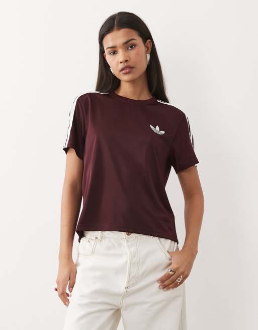 adidas Originals - Firebird - T-shirt in roodbruin / gebroken wit
