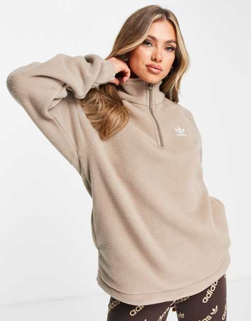 adidas Originals - Fleece met 1/4 rits in gebroken beige