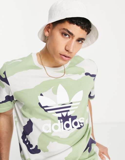 adidas Originals - T-shirt met groot logo in magic limoen camouflage