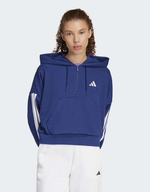 adidas performance - Essentials - Hoodie van badstof met 3-Stripes logo en korte rits in donkerblauw met wit