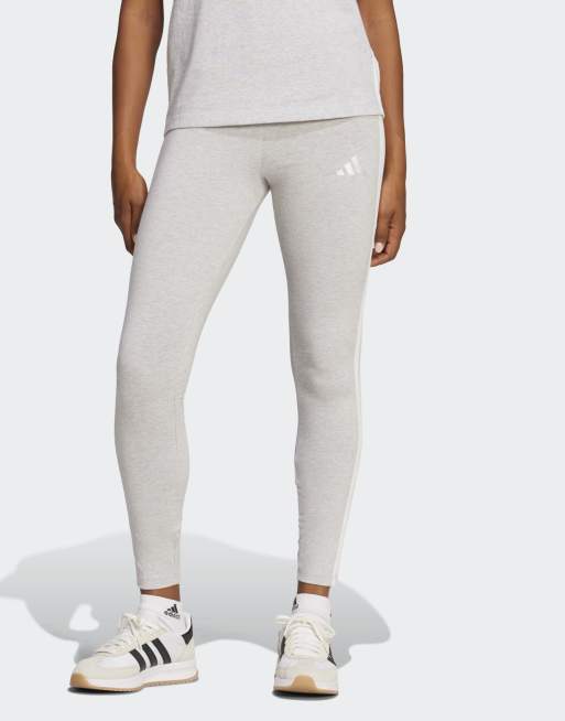 adidas performance - Essentials - Katoenen legging met 3-Stripes in gemêleerd lichtgrijs / wit