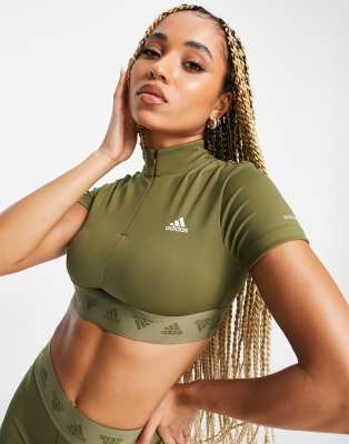 adidas - Training - Cropped T-shirt met rits in khaki<sub><sub></sub></sub>