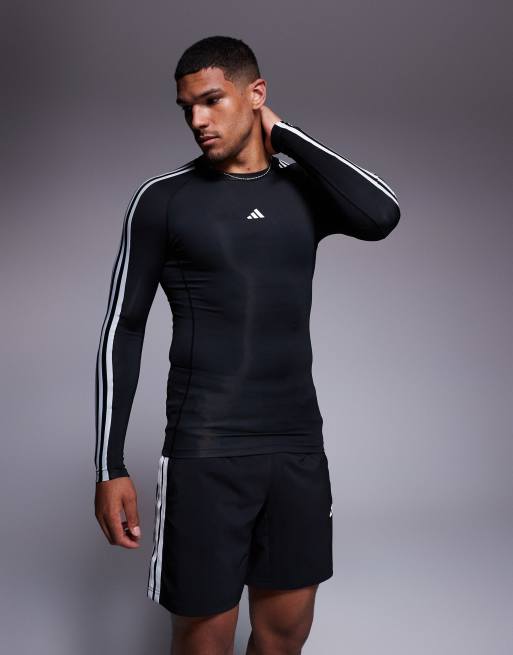 adidas Training Tech Fit - Top met 3-Stripes en lange mouwen in zwart 3S LS