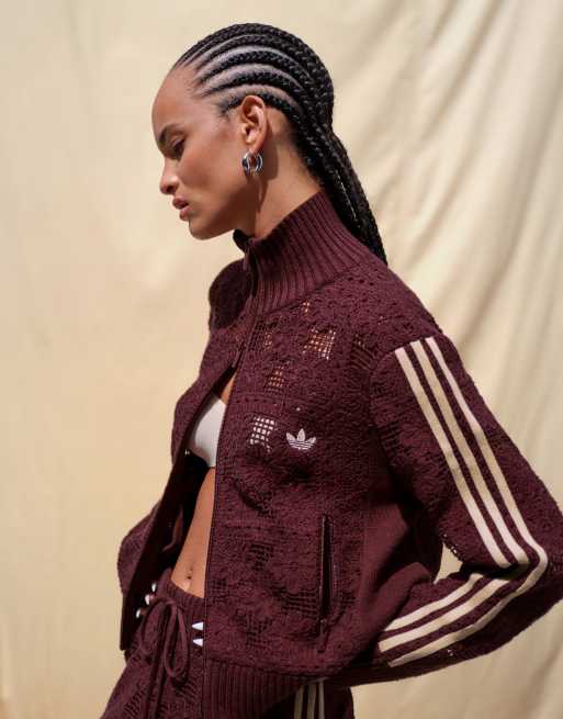 adidas Originals x ASOS - Gehaakt en gebreid trainingsjack in bruin, deel van co-ord set