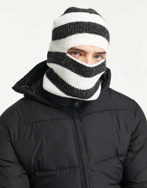 ADPT - Gestreepte, gebreide bivakmuts met ribbels in zwart en wit