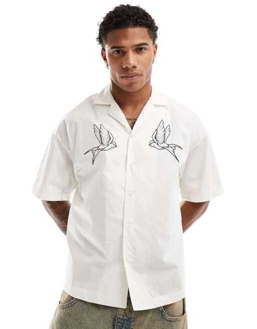 ADPT - Oversized overhemd met reverskraag en vogelprint