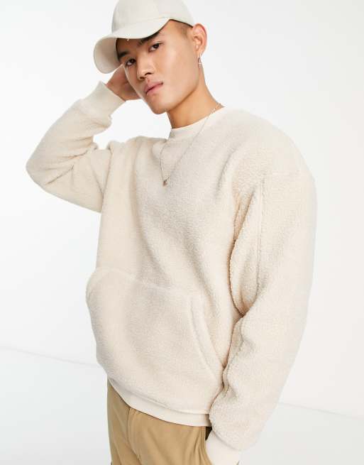 ADPT - Oversized sweatshirt van teddystof met ronde hals in beige