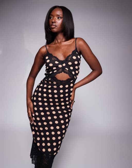 AFRM - Josette - Midi-jurk met kanten rand en amandelkleurige stippenprint