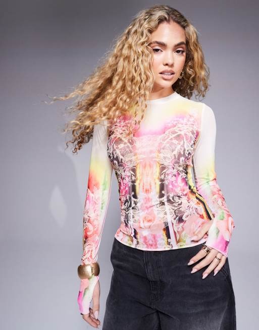 AFRM - Kaylee - Top van mesh met lange mouwen in grunge kantprint
