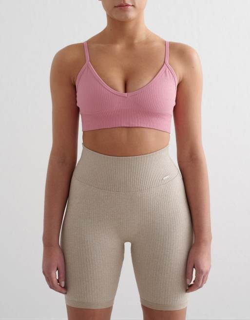 Aim'n - Desert Rose - Geribbelde naadloze diepuitgesneden bh in oudroze