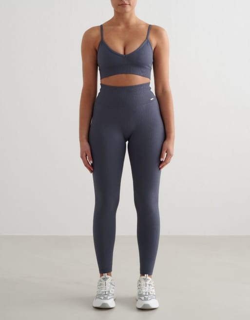 Aim'n - Geribbelde naadloze diepuitgesneden bh in storm blauw