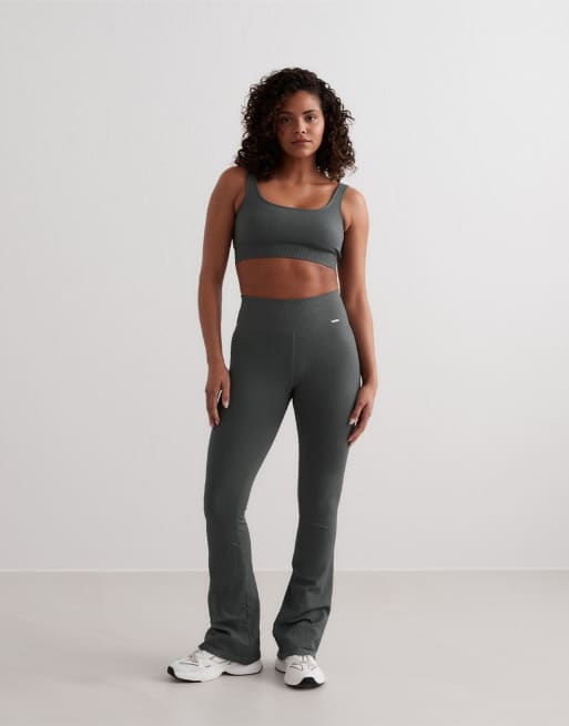 Aim'n - Geribbelde naadloze flare-legging in saliegroen