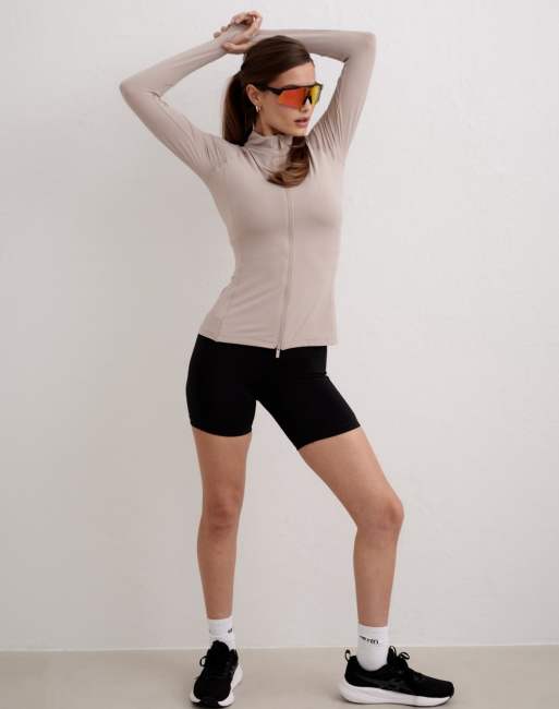Aim'n - Hardloopjack met lange mouwen en rits in donkere klei