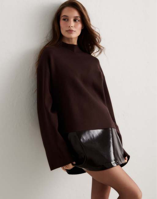 Aim'n - Perfect gebreide top met lange mouwen in chocoladebruin