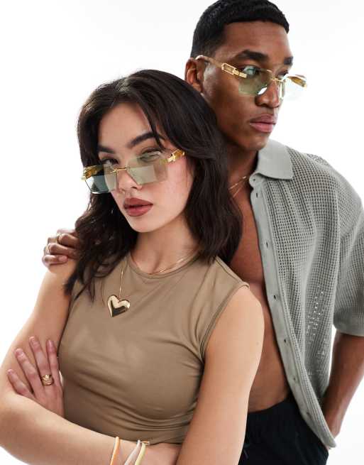 AIRE - Nebula - Rechthoekige metalen zonnebril in groen/goud