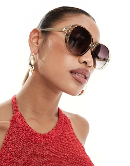 ALDO - Nami - Oversized ronde zonnebril in olijfgroen