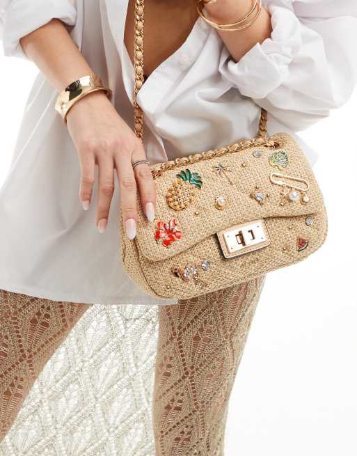 ALDO - Paradise - Crossbody tas van raffia met zomerse bedeltjes