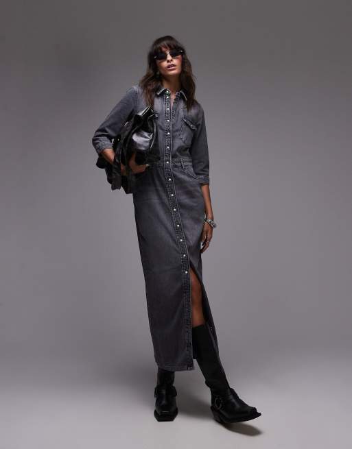 AllSaints - Blair - Denim maxi jurk in gewassen zwart