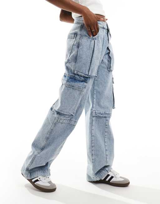 AllSaints - Echo - Cargojeans met wijde pijpen in licht indigo