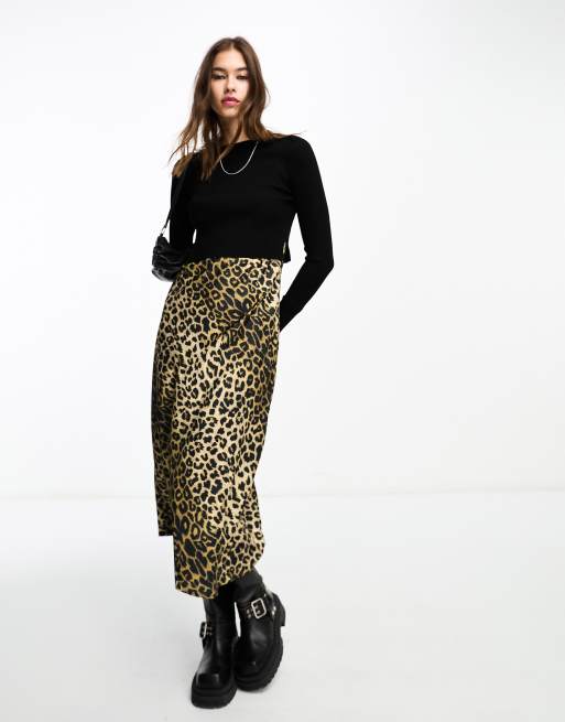 AllSaints - Hera - 2 in 1 midi-slipdress en trui met luipaardprint in zwart