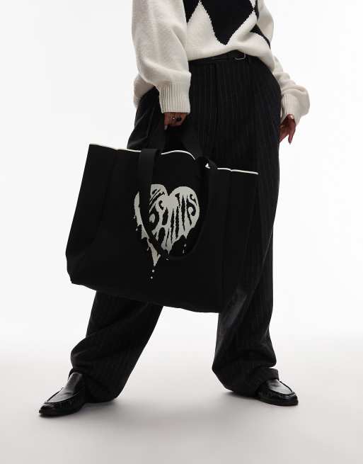 AllSaints - Izzy - Pluizige tote met hart in zwart