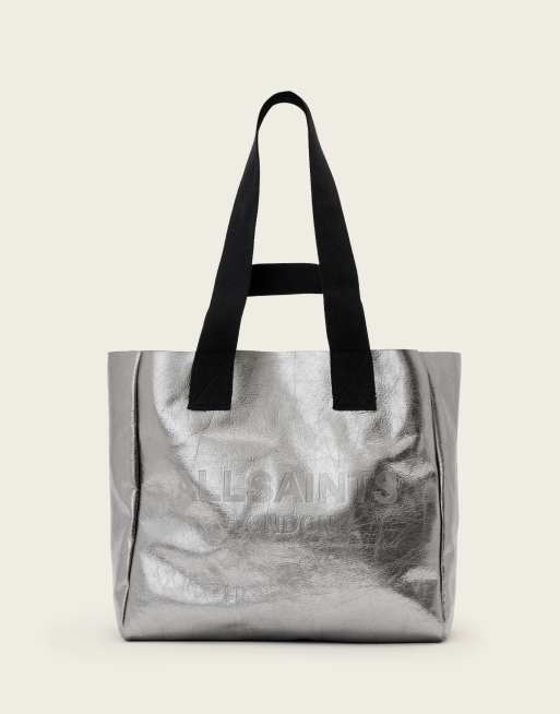 AllSaints - Izzy - Tote tas van metallic leer in gunmetal