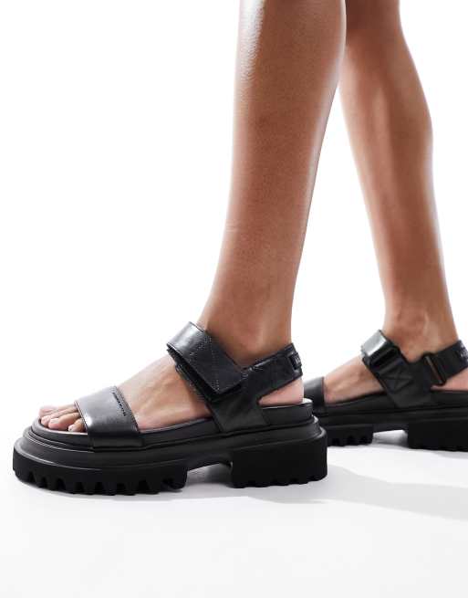 AllSaints - Rory - Leren sandalen met plateauzool in zwart