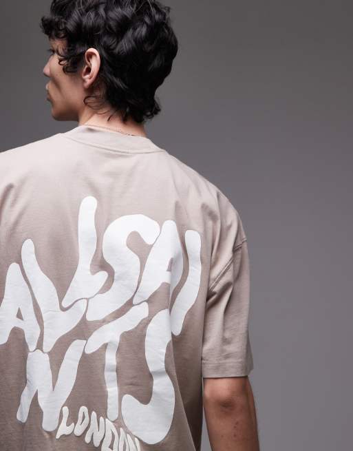 AllSaints - T-shirt met Orlando-print op de achterkant in taupe