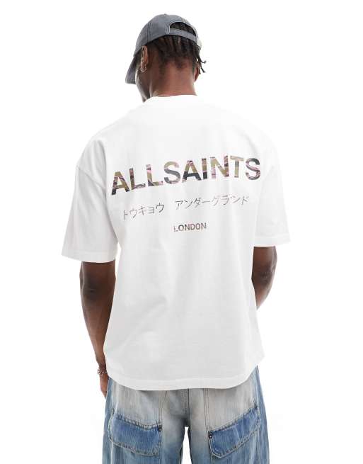 AllSaints - Underground - Oversized T-shirt in wit en camouflageprint