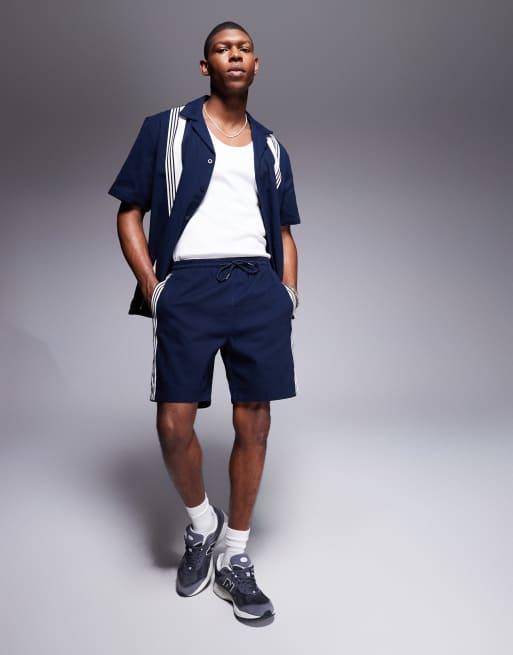 Alma de Ace - Gebreide shorts met streepdetail en logo in marineblauw, deel van co-ord set