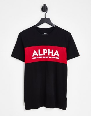 Alpha Industries - T-shirt met contrasterend pand met logo op de borst in zwart