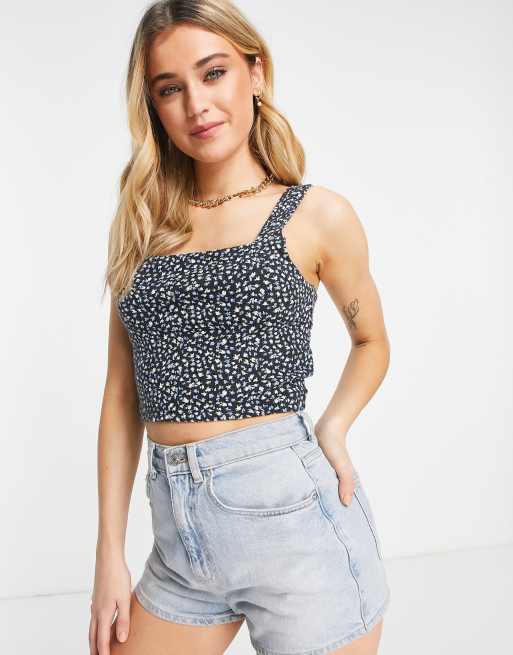 American Eagle - Crop top met bandjes en bloemenprint in zwart