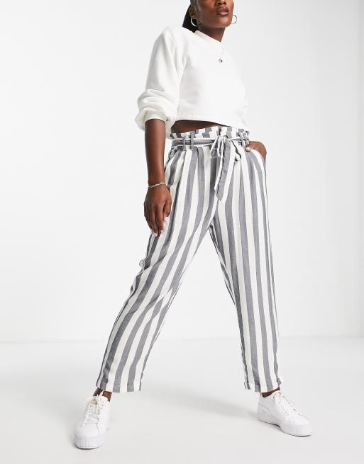 American Eagle - Gestreepte broek met striktaille met plooirand in multi