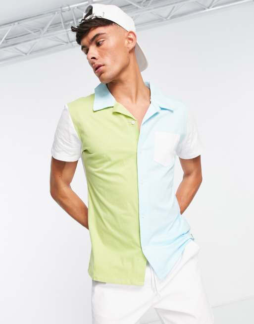 American Stitch - Contrasterend overhemd in groen en blauw