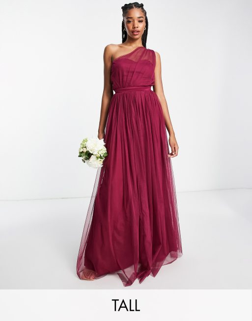 Anaya With Love Tall - Bruidsmeisjes - Maxi jurk van tule met blote schouder in pruimenrood