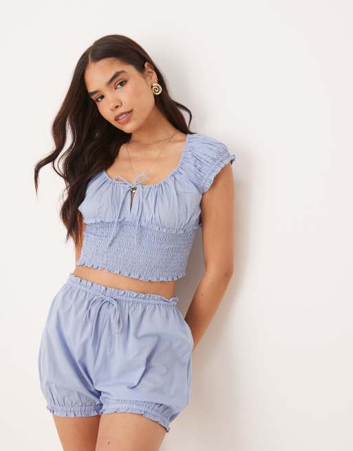 Aray - Aangerimpelde cropped strandtop in lichtblauw, deel van co-ord set