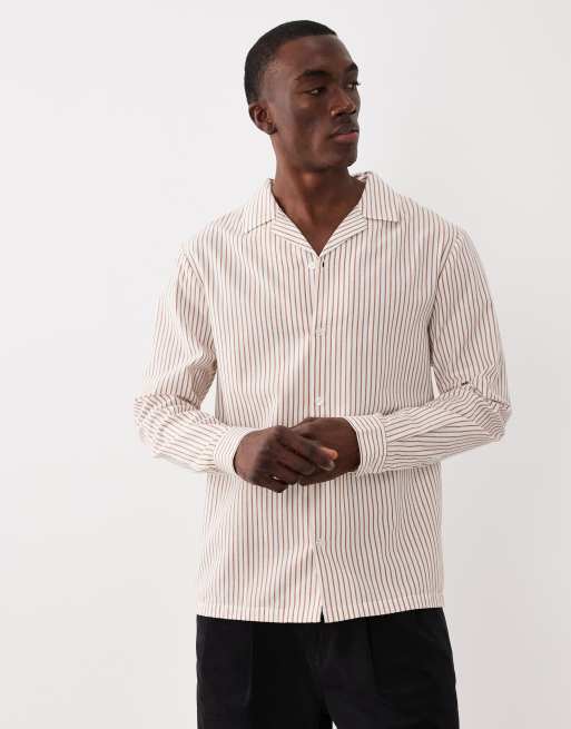 Aray - Gestreept overhemd met linnenlook en lange mouwen in bruin en wit