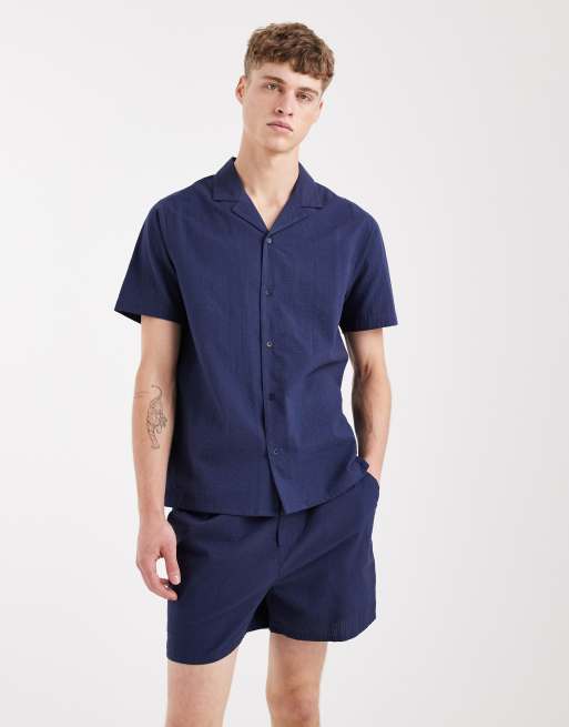 Aray - Seersucker short in marineblauw