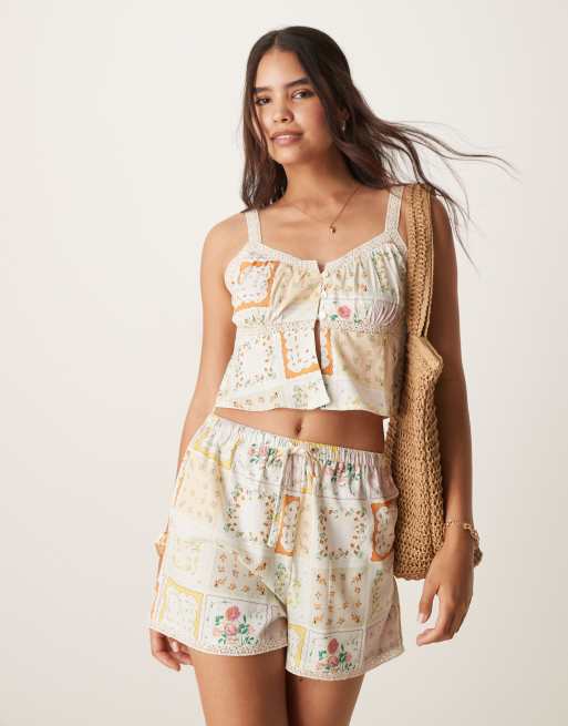 Aray - Strandtop met patchworkprint in multi, deel van co-ord set