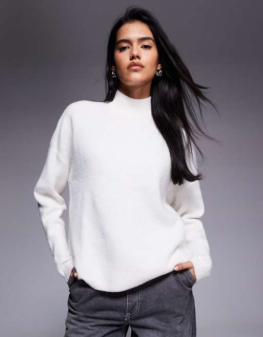 Aria Cove - Gebreide trui met ronde hals en geribbelde boorden in crème