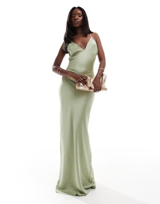 Aria Cove - Maxi slipdress van satijn in saliegroen