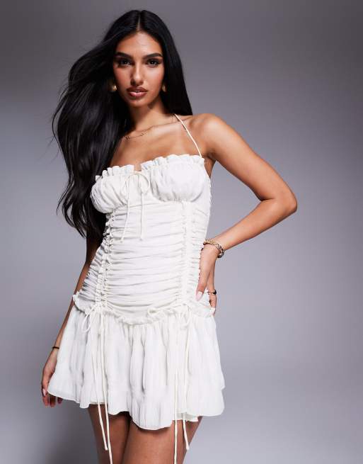 Aria Cove - Mini jurk van chiffon met randen met ruches, verlaagde taille en strikdetail in wit
