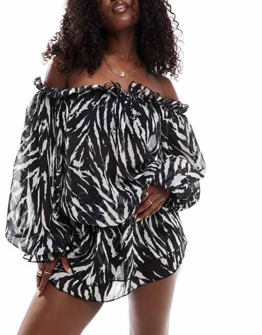 Aria Cove - Strandjurk met blote schouders, ruches en zebraprint