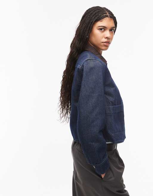 ARKET - Cropped denim shacket in spoelwassing met contrasterende kraag