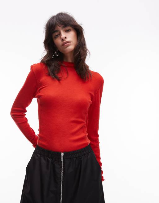 ARKET - Gebreide top van merinowol met lange mouwen en capuchon in rood