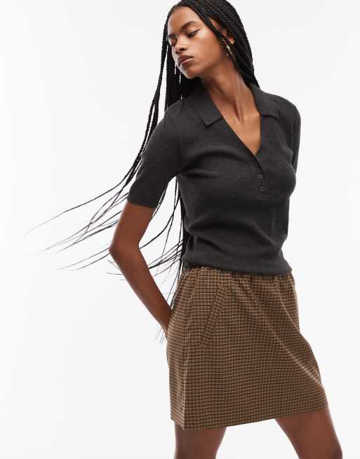 ARKET - Geruite mini-rok van wolmix in bruin