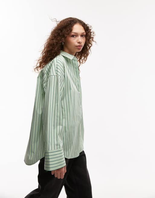 ARKET - Gestreept overhemd met brede manchetten in groen