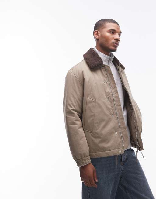 ARKET - Gewatteerd jack met kraagje van imitatiebont in beige
