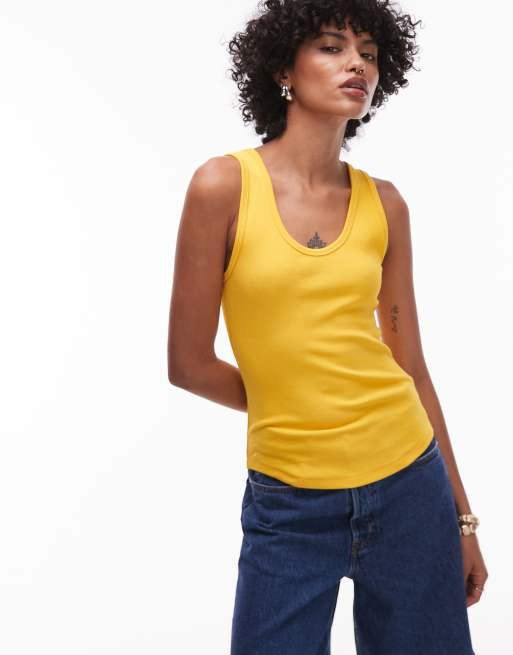 ARKET - Hemdje van geribbelde jersey met lage ronde hals in geel