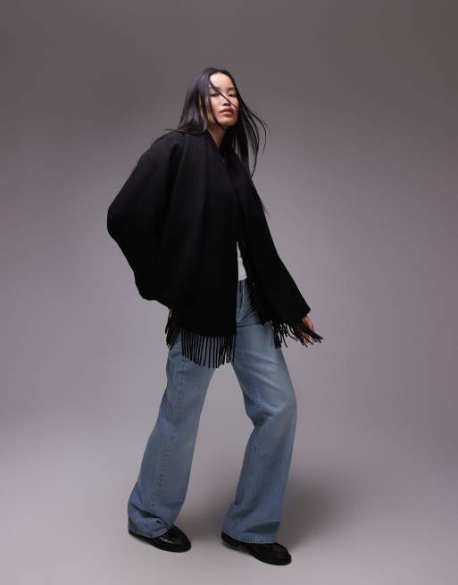 ARKET - Jack van wolmix met sjaal met franjekwastjes en lange pasvorm in zwart